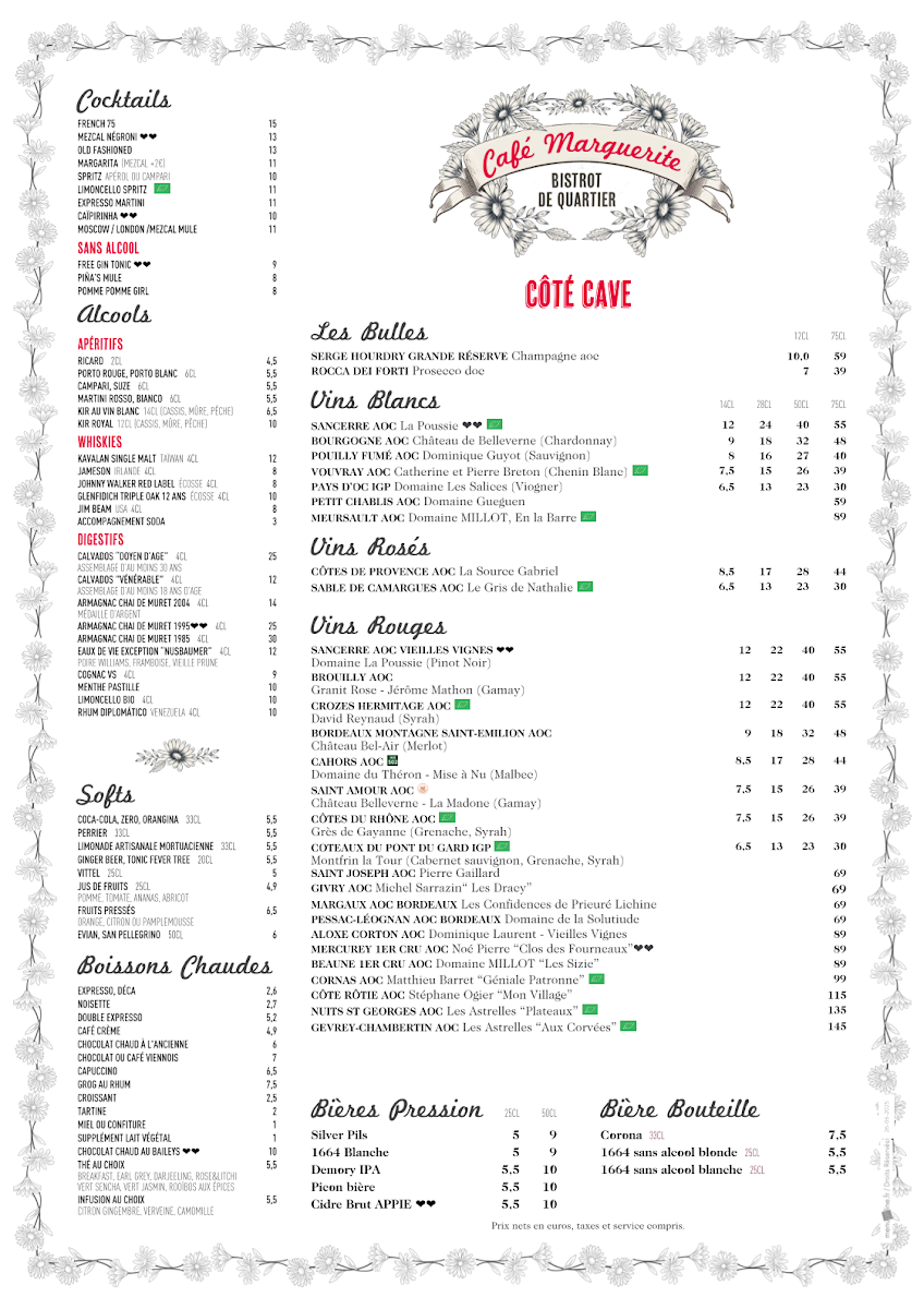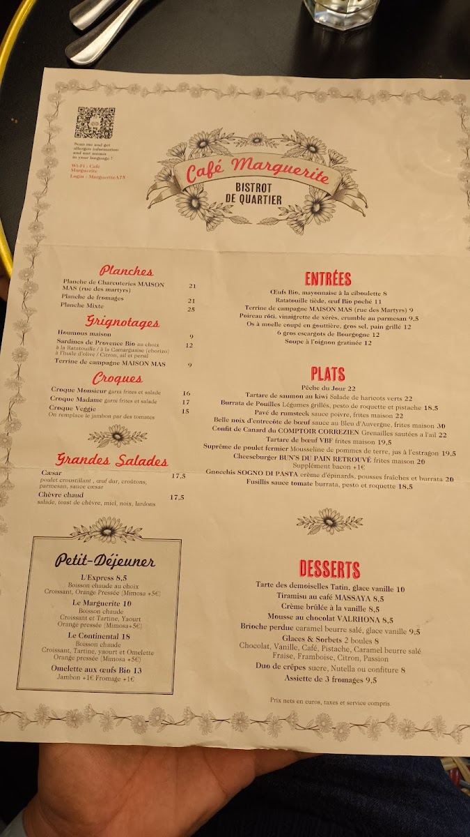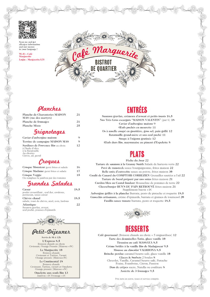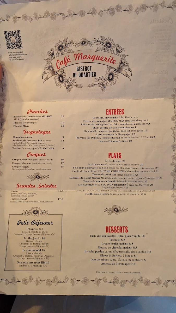 Welcome to Café Marguerite, an enchanting culinary gem located at 28 R. des Martyrs, Paris. This charming café captures the essence of French dining, where every dish tells a story. Customers rave about the enticing starters, like the escargot and rich French onion soup, both praised for their authentic flavors.